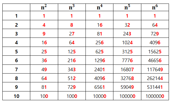 우선, 1~10까지의 숫자들의 제곱을 보면,