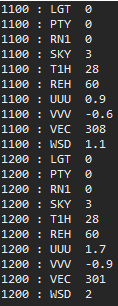 초단기 예보는 시간당 10개의 데이터를 주며, 아래와 같이 시간마다 주는 데이터 양이 다르다..