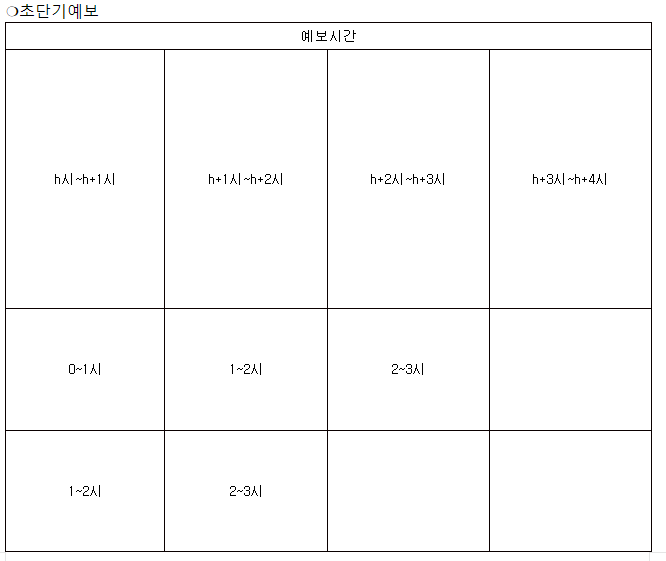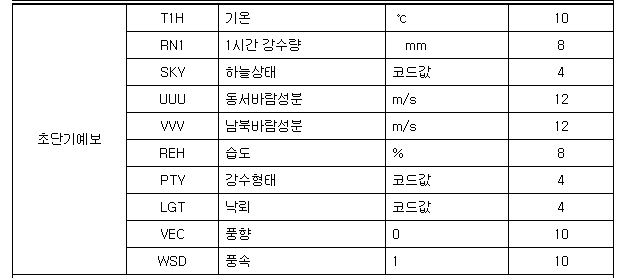 아래의 이미지는 초단기 예보가 주는 값의 설명이다.
