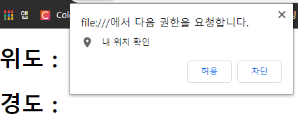 우선 브라우저가 Geolocation을 사용 가능한지 확인하기 위해서는 아래의 방법을 이용한다.