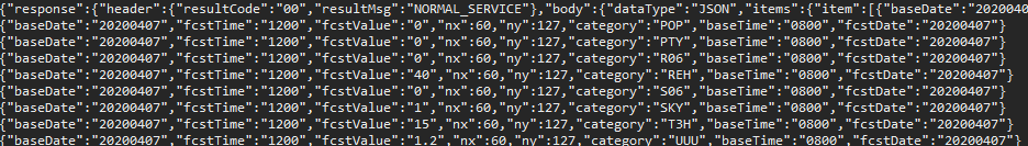 String apiUrl = "http://apis.data.go.kr/1360000/VilageFcstInfoService/getVilageFcst"; //동네예보조회