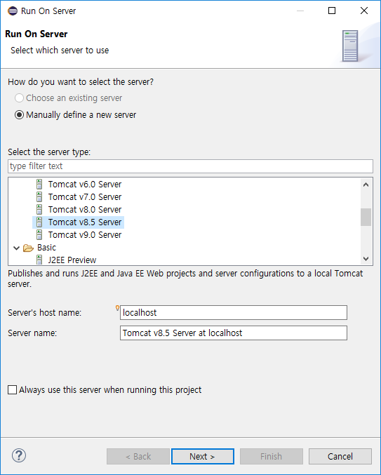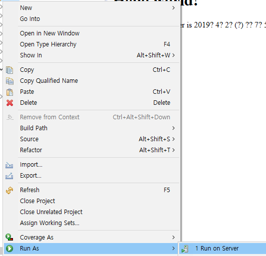 이것으로 설정을 마쳤고 프로젝트 우클릭 Run as -> Run on Server를 클릭하게 되면 정상적으로 동작하는 것을 확인할 수 있다.