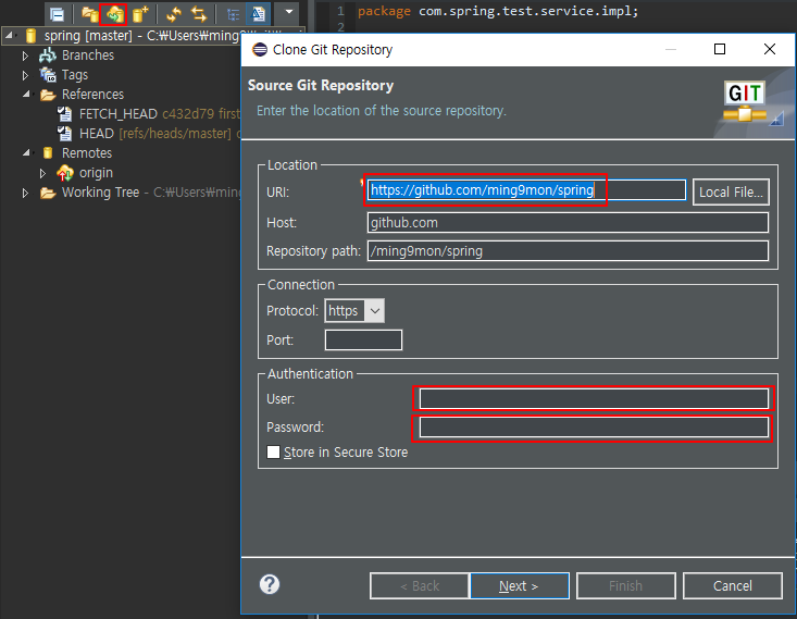 1. 저장소를 추가해준다. URI를 입력하고, 필요하다면 아이디와 패스워드를 입력해주면 된다.