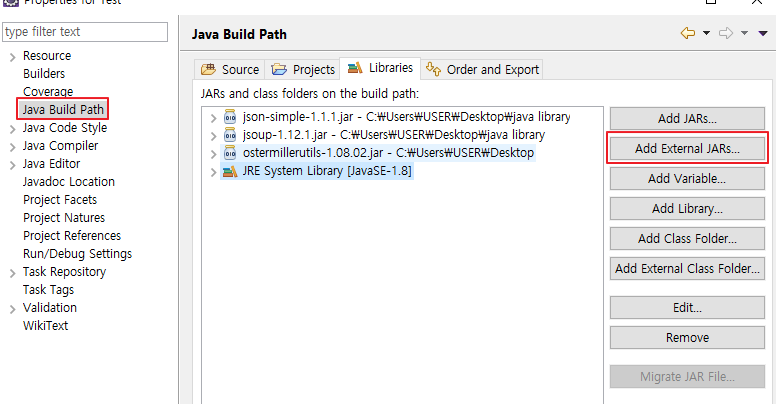 http://www.java2s.com/Code/Jar/j/Downloadjsonsimple111jar.htm 에서 다운받은후 등록하여 사용할 수 있다.