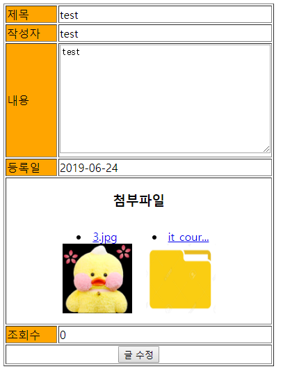 첨부 파일이 없을 때는 첨부파일 없음이라고 추가시켜 주고, 첨부 파일이 있는경우 첨부 파일의 이미지를 보여준다.